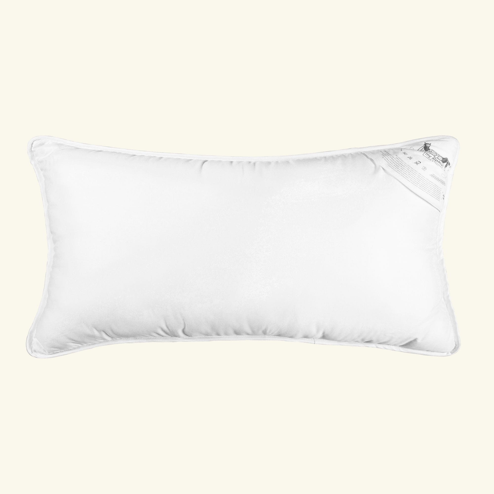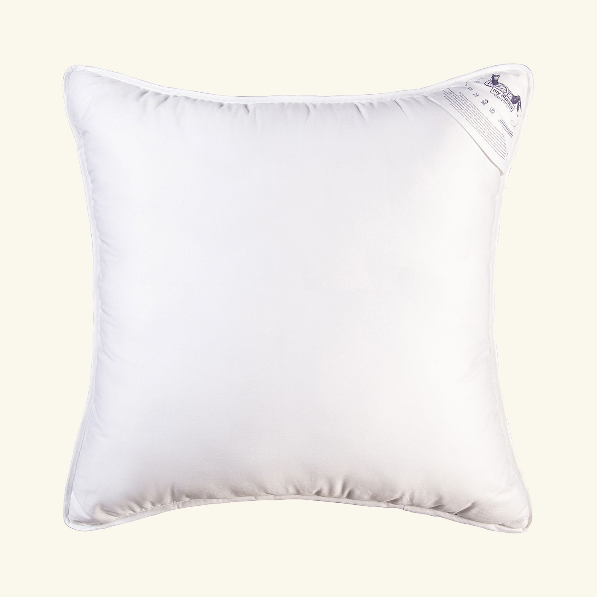 Poduszka wypełniona 100% wełną alpaki o unikalnych właściwościach hipoalergicznych i niezatrzymującą wilgoci. Obszyta ekskluzywną gęsto tkaną bawełną.