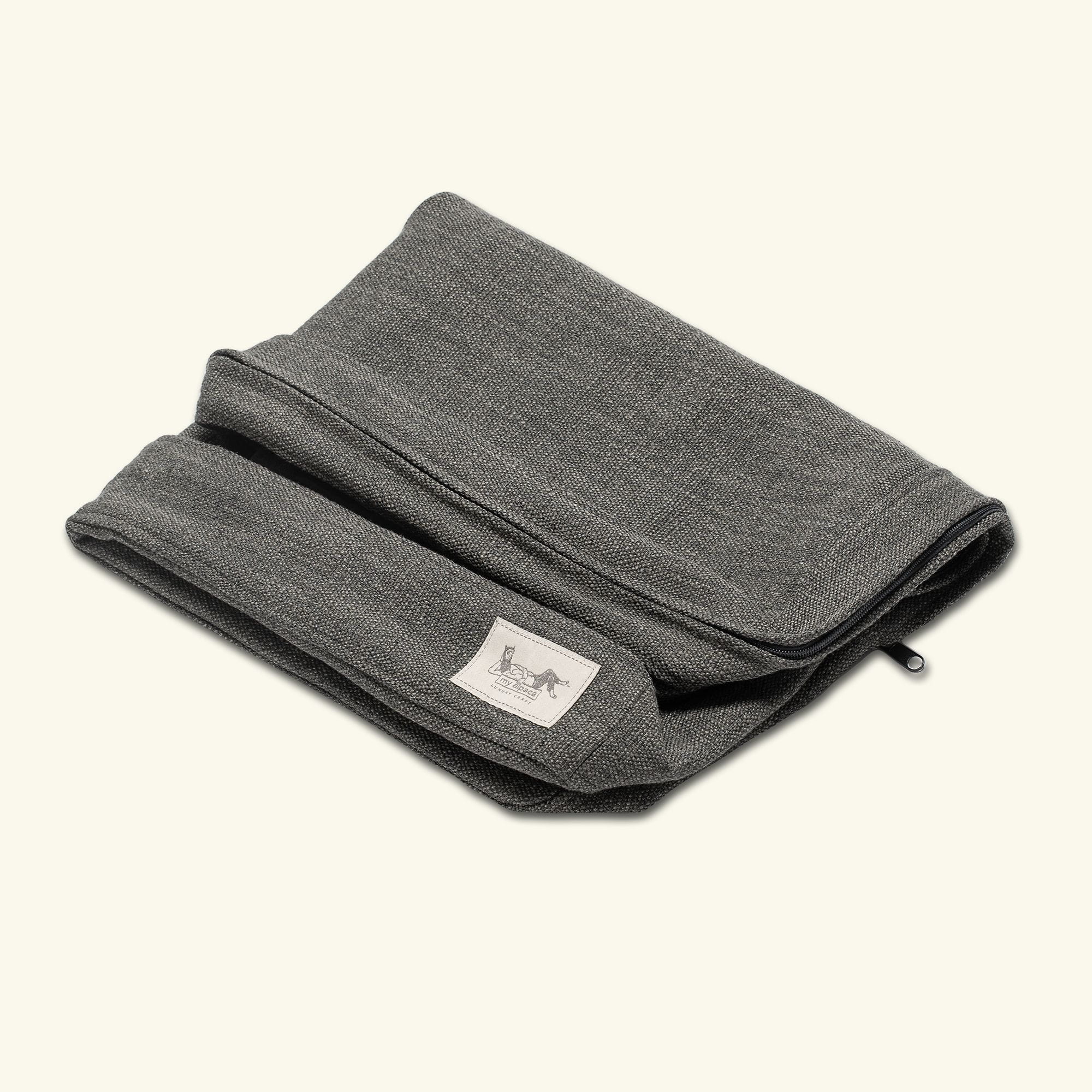 Pokrowiec, uszyty z trwałej i gęsto tkanego materiału, chroni materac dla psa z alpaki przed zabrudzeniami.
